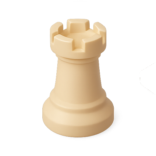 A clean, isolated image of a beige chess rook piece, showcasing its smooth design and classical features. Ideal for chess-related content, educational materials, or game promotion.