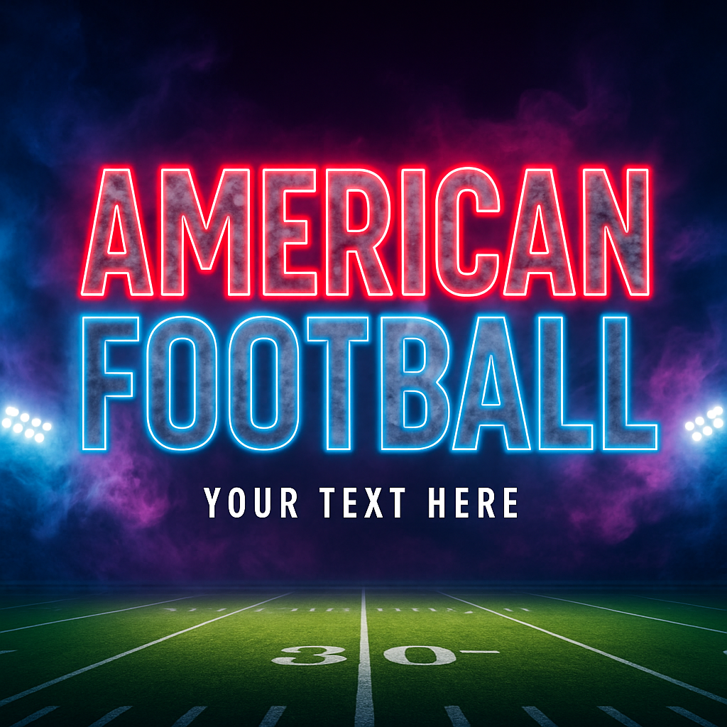 Vibrant sports-themed graphic featuring bold typography for 'American Football', set against a dramatic field background, ideal for promotions or events.