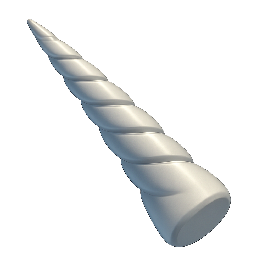 A stylized 3D representation of a narwhal tusk, showcasing a spiral design with a smooth, volumetric finish. The icon features a transparent background and is presented in a three-quarter view for depth.