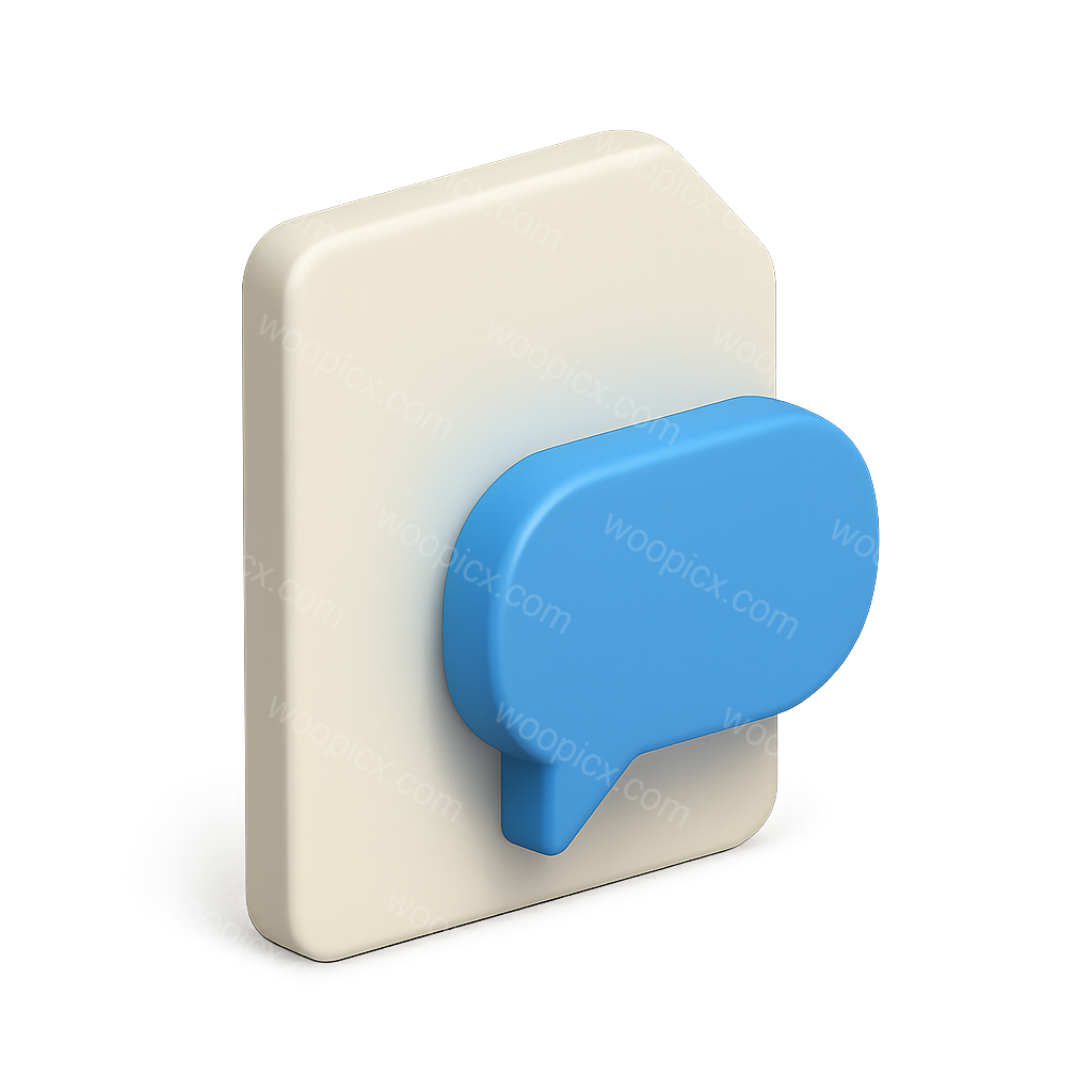 A stylized 3D icon representing a document with a blue dialogue box. The design features a transparent background, isometric perspective, and a modern volumetric look.