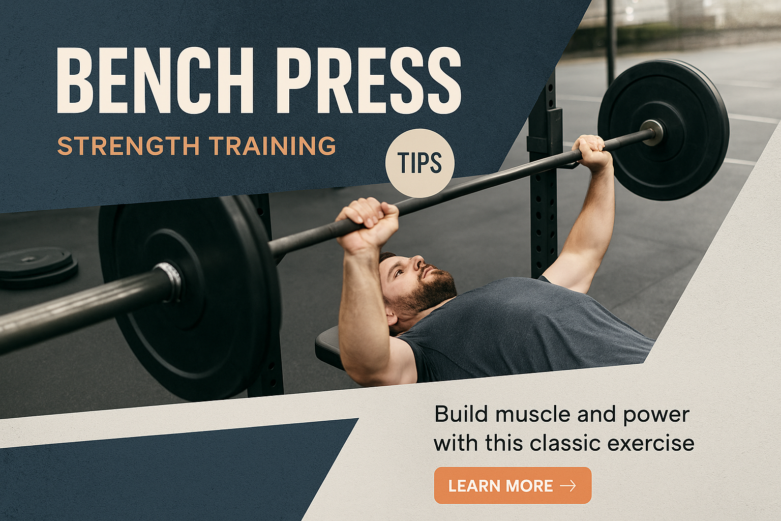 /Collection: /by davooda/Type: PNG/A man performing a bench press in a gym setting, showcasing strength training techniques. The design includes layered elements with clear text hierarchy and action buttons, emphasizing a professional aesthetic.