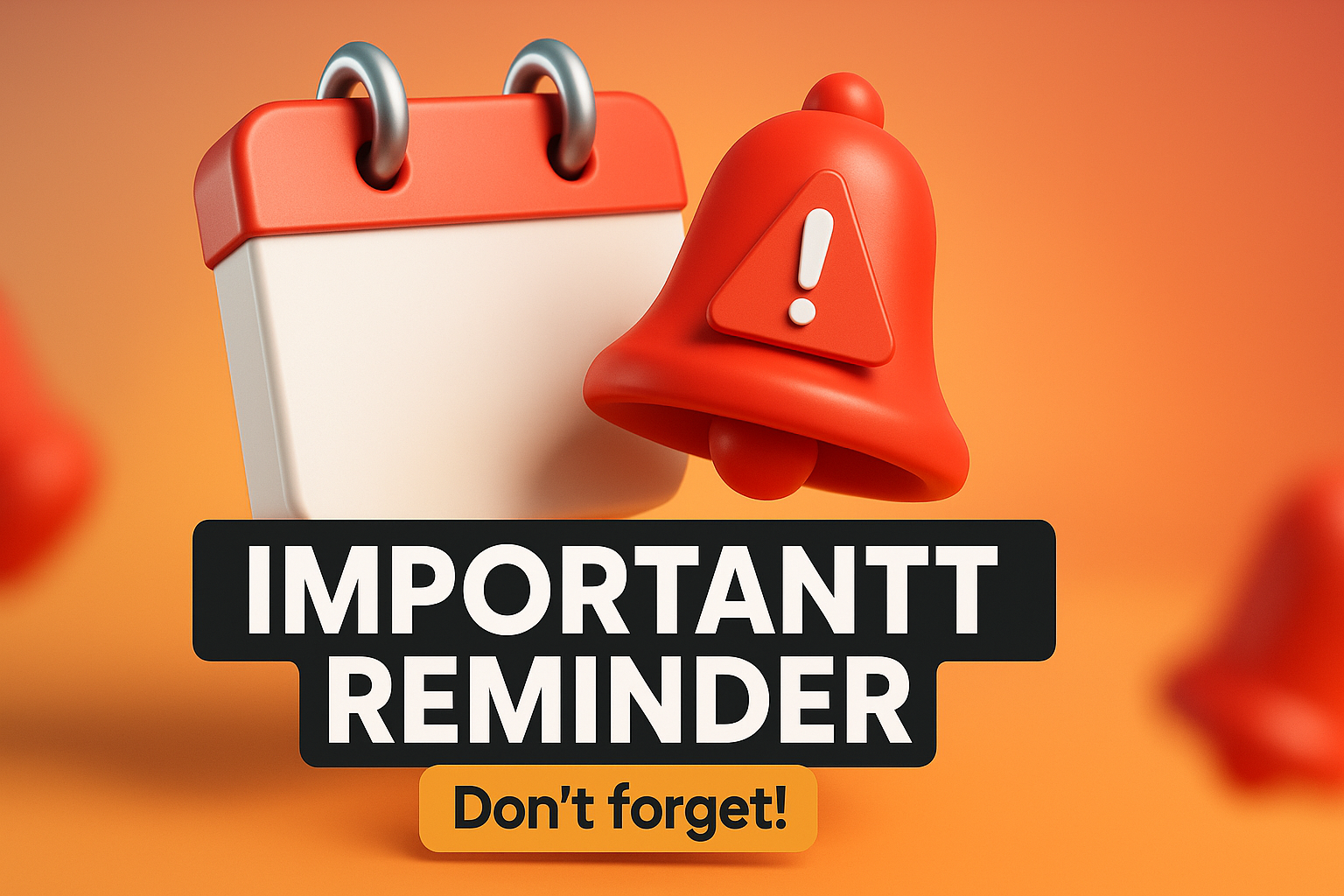 Colorful 3D graphic featuring a calendar and alarm bell, designed to convey urgency. Ideal for notifications or reminders in digital content.