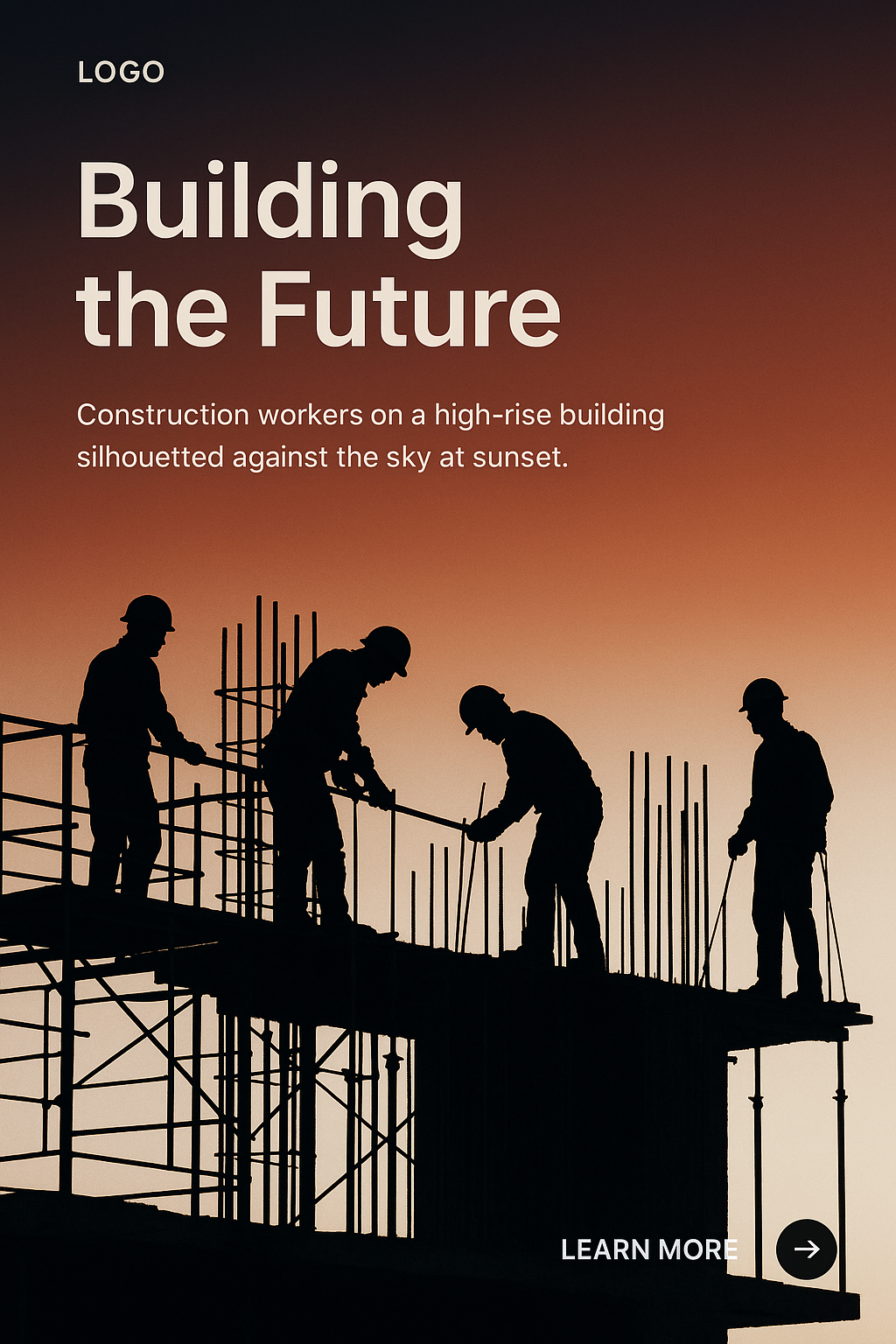 /Collection: /by davooda/Type: PNG/The image features construction workers silhouetted against a vibrant sunset sky, working on a high-rise building. The scene captures a moment of teamwork and dedication.