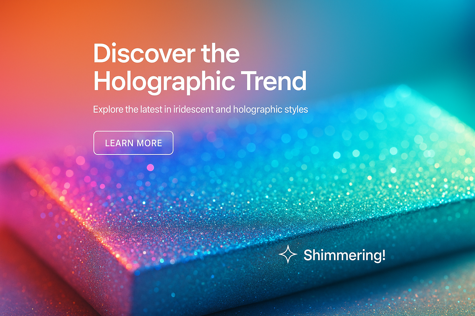 A vibrant promotional banner showcasing iridescent and holographic design elements. Ideal for marketing campaigns targeting fashion and design enthusiasts.