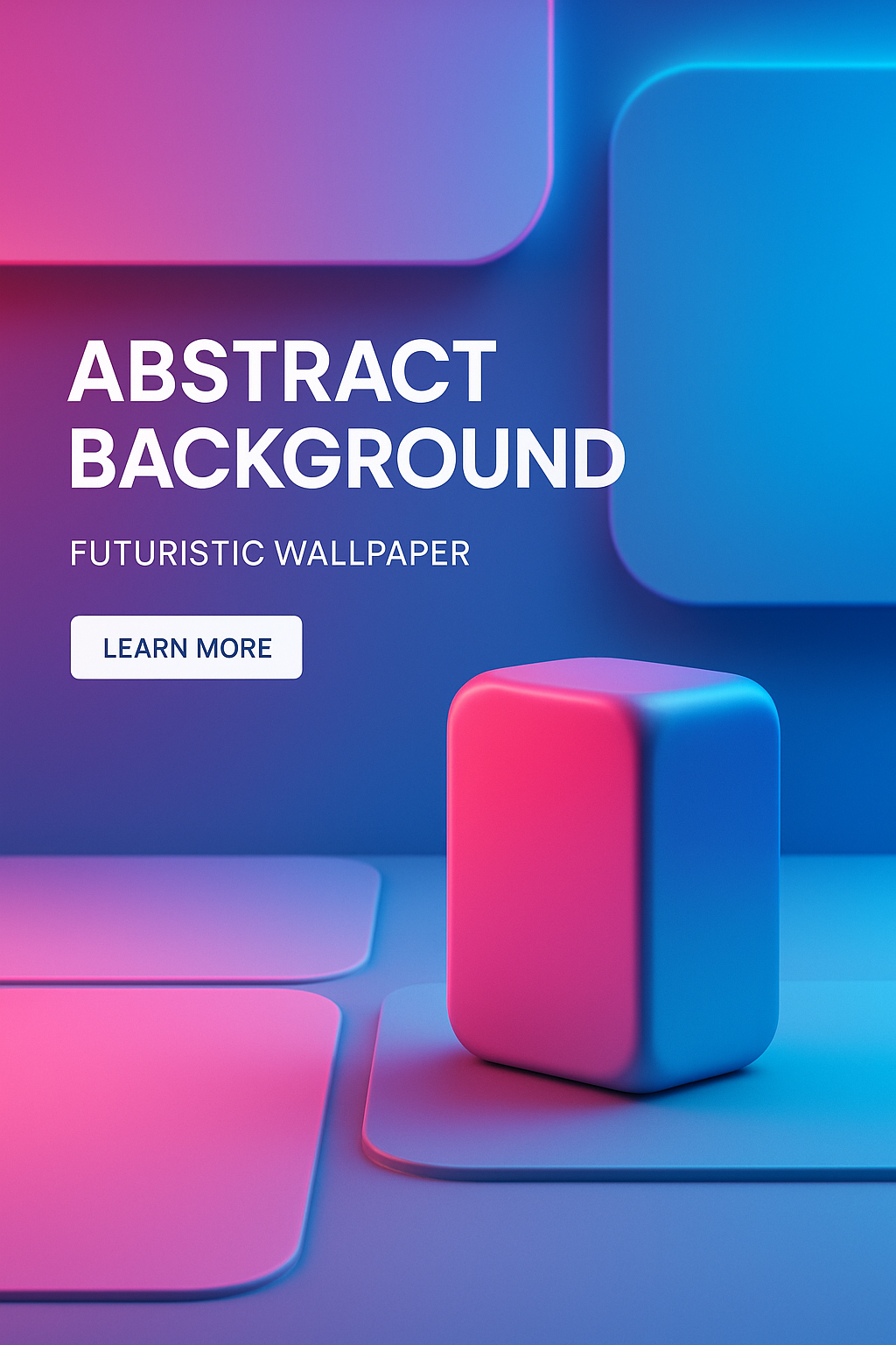 A vibrant 3D render showcasing a neon pink and blue abstract background. Features geometric blocks and bold typography, creating a professional and modern layout.