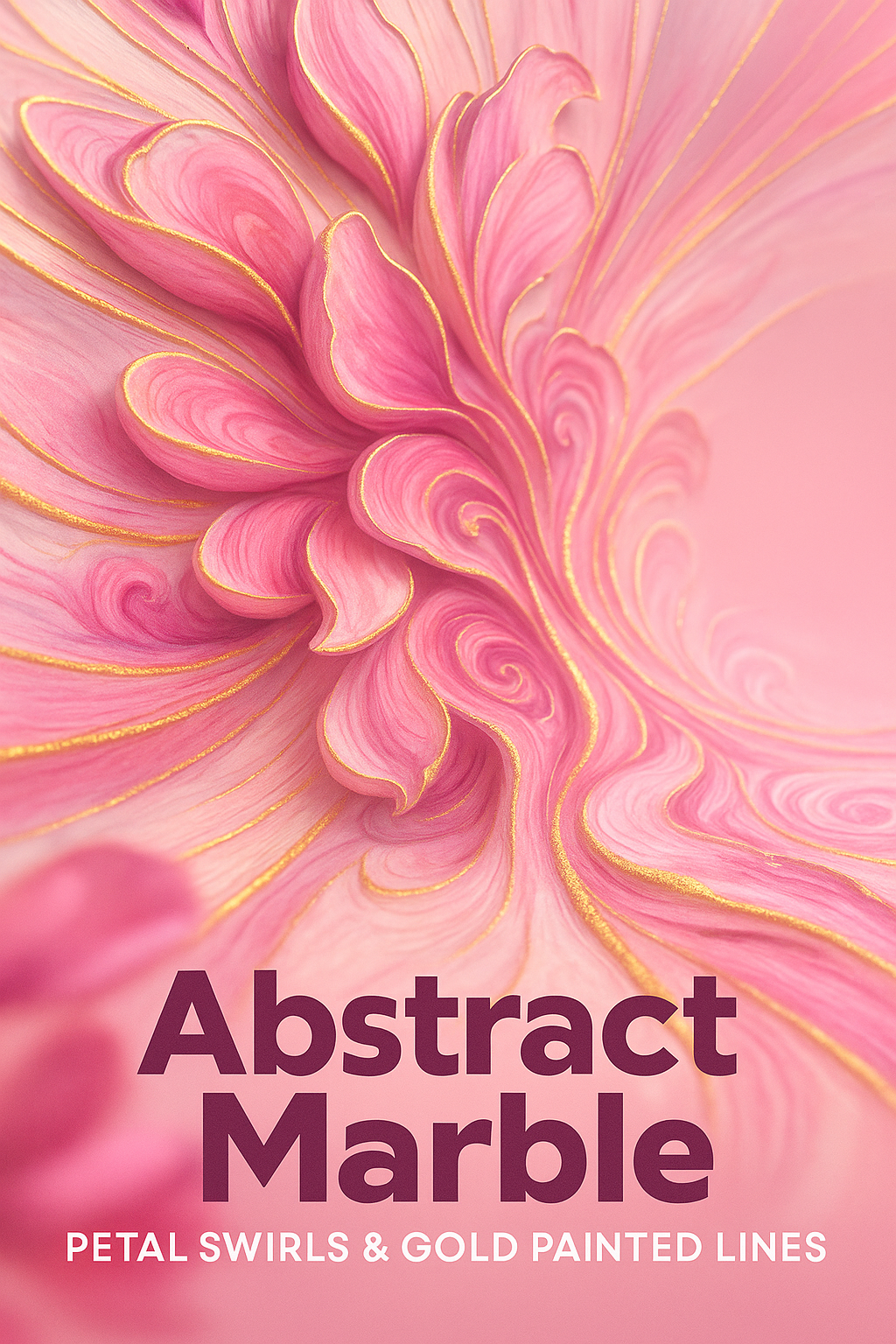 /Collection: /by davooda/Type: PNG/An abstract marble design featuring luxurious pink petals and gold-painted lines. The dynamic composition showcases swirling patterns, creating a rich visual experience.