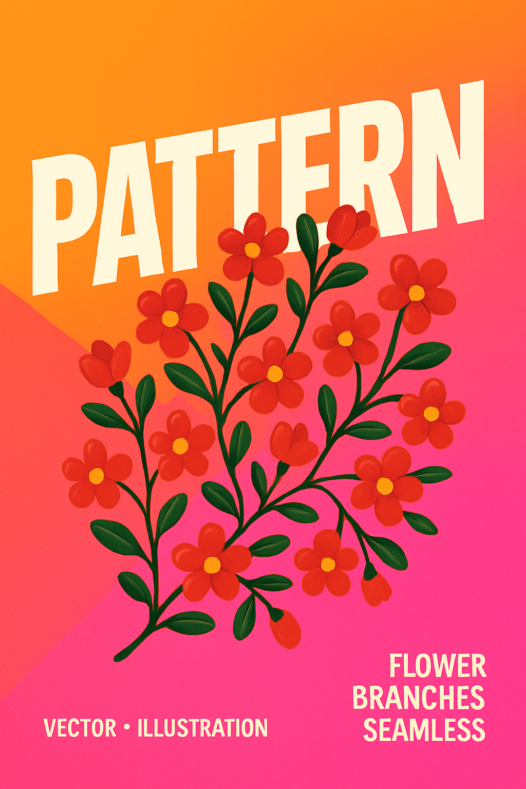 Vibrant Floral Pattern with Bold Typography and Color Blocks