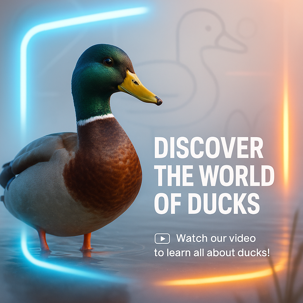 Engaging promotional image featuring a realistic duck illustration, designed to attract viewers to a video about ducks. The modern, colorful design elements enhance visual appeal.