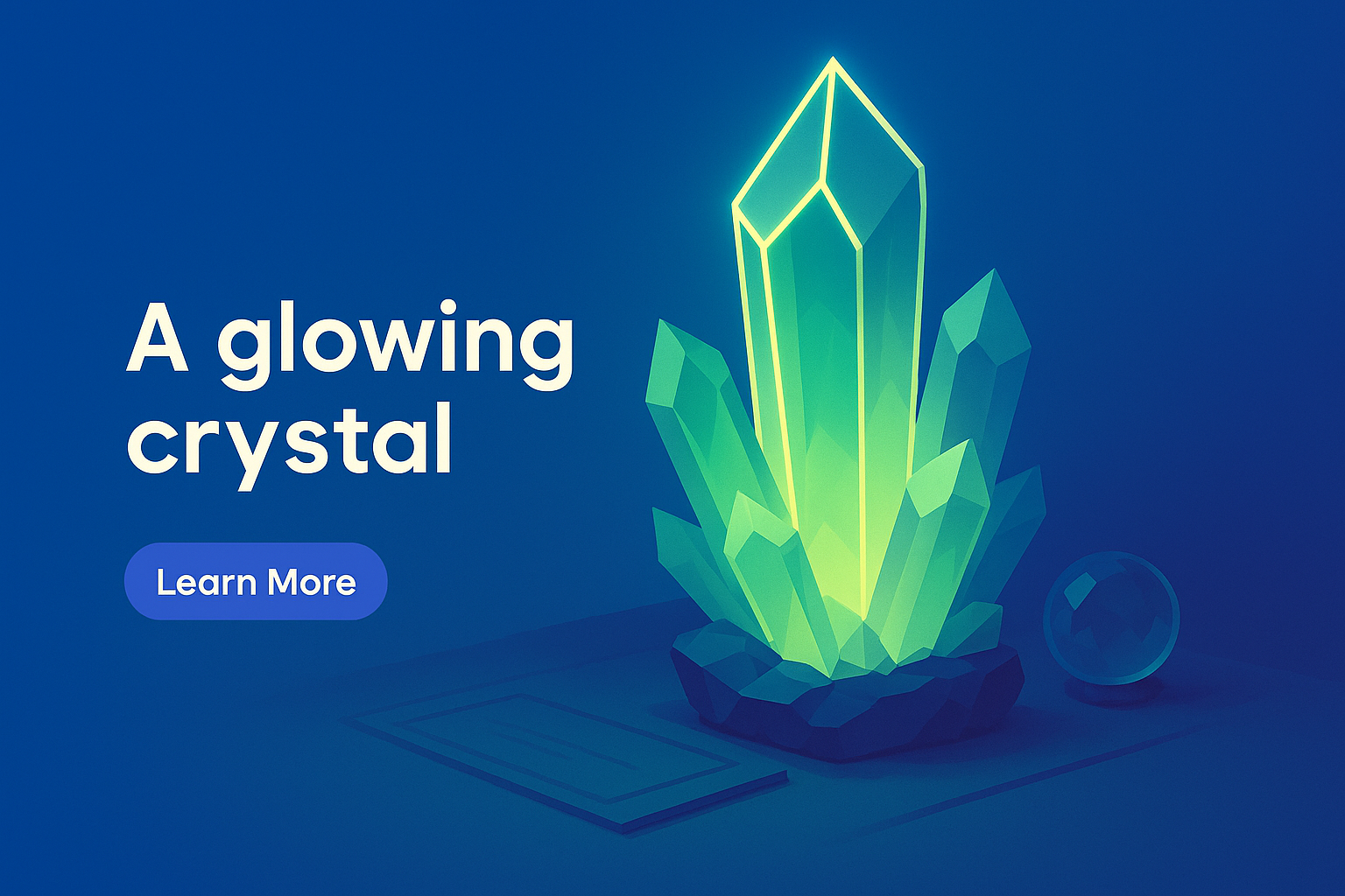 /Collection: /by davooda/Type: PNG/This image features a striking glowing crystal emerging from a shadowy background. The crystal radiates a soft light green hue, complemented by solid blue and violet tones, creating a mystical atmosphere.