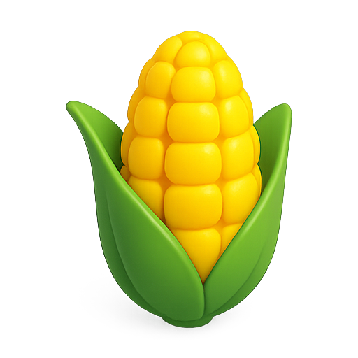A vibrant 3D representation of a corn cob nestled in green leaves, showcasing a playful and stylized design. Ideal for food-related graphics or educational materials.