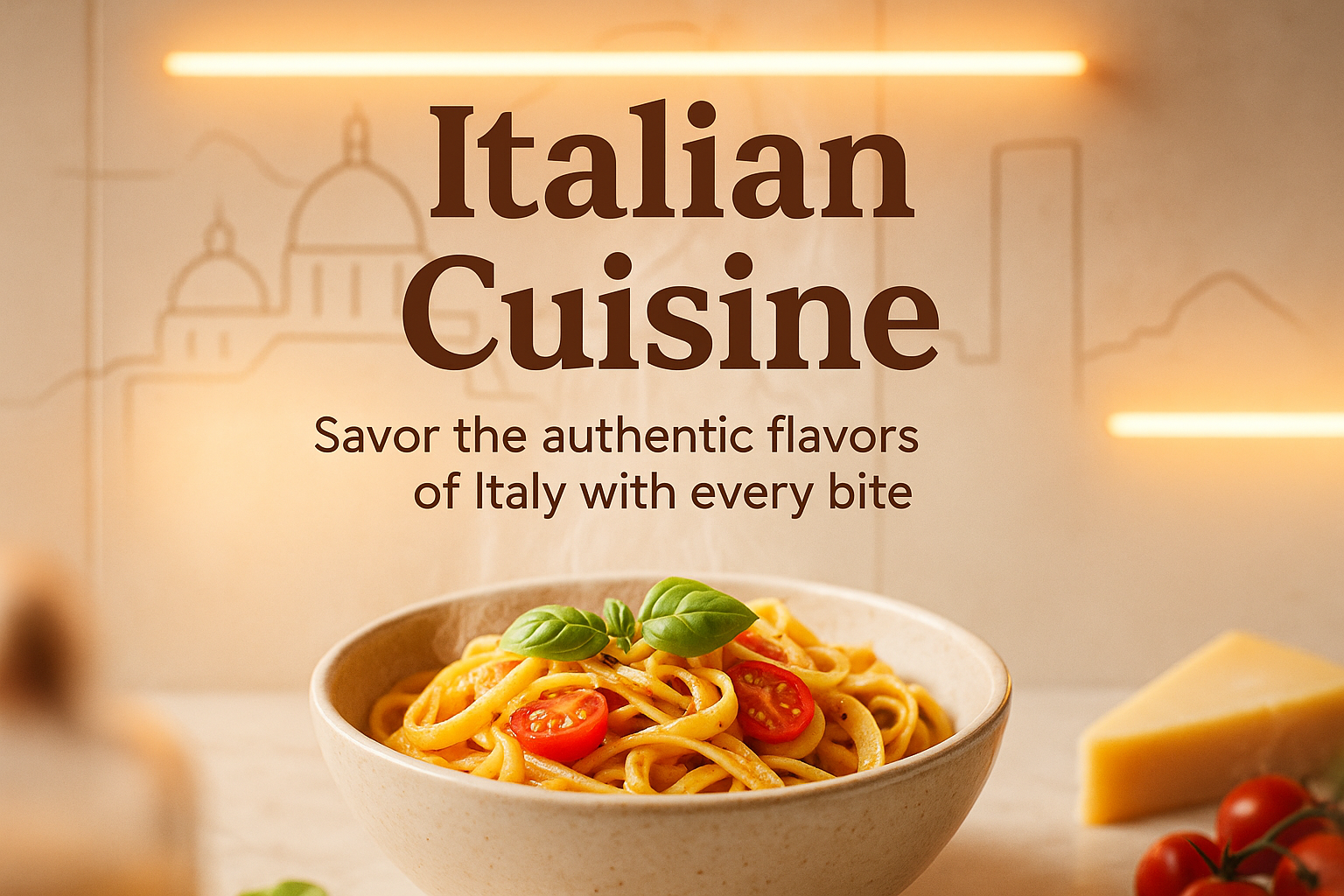Inviting Italian Cuisine Promotional Image with Pasta Dish