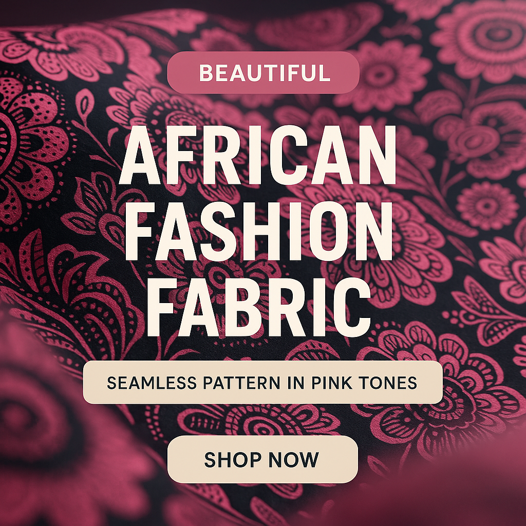 Promotional Banner for African Fashion Fabric in Pink Tones