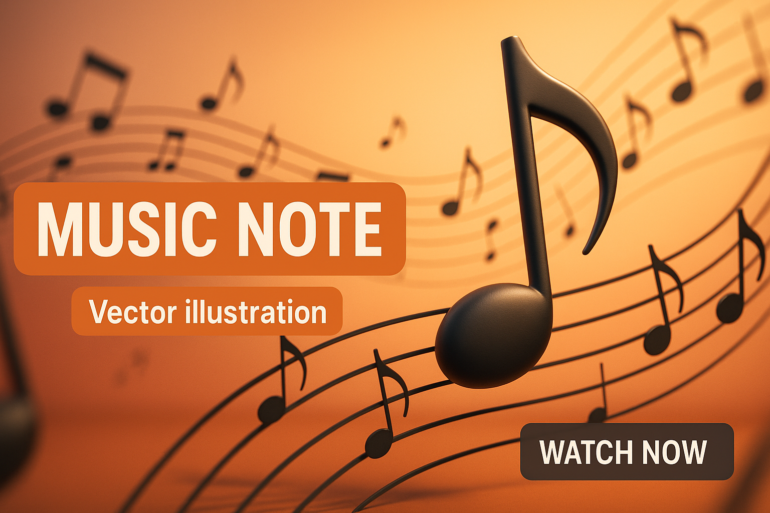 A vibrant 3D vector illustration of a music note set against a flowing musical staff background, ideal for music-related promotions or content.
