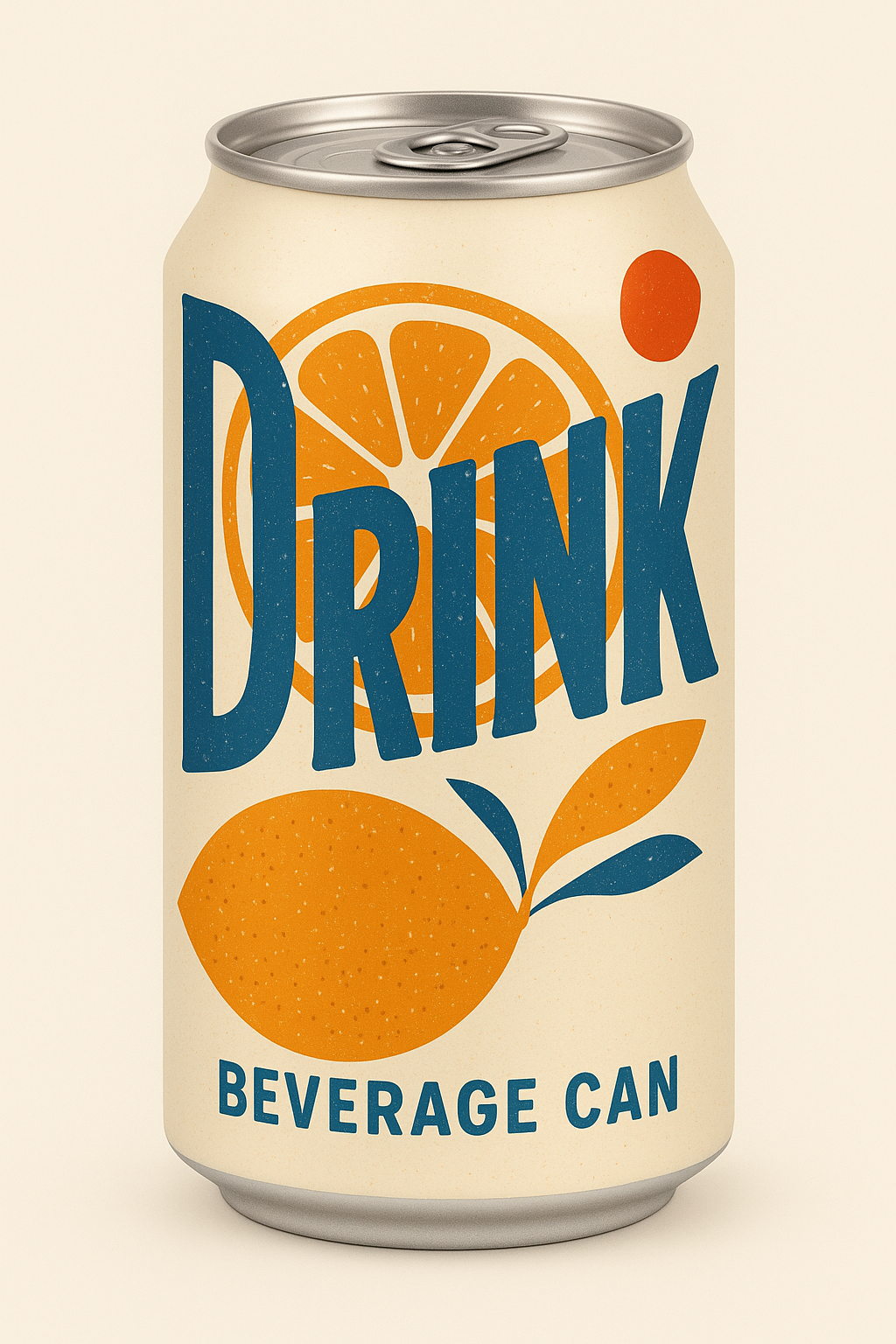 A creatively designed beverage can featuring a vibrant illustration of citrus fruits. Ideal for marketing and branding in the beverage industry.