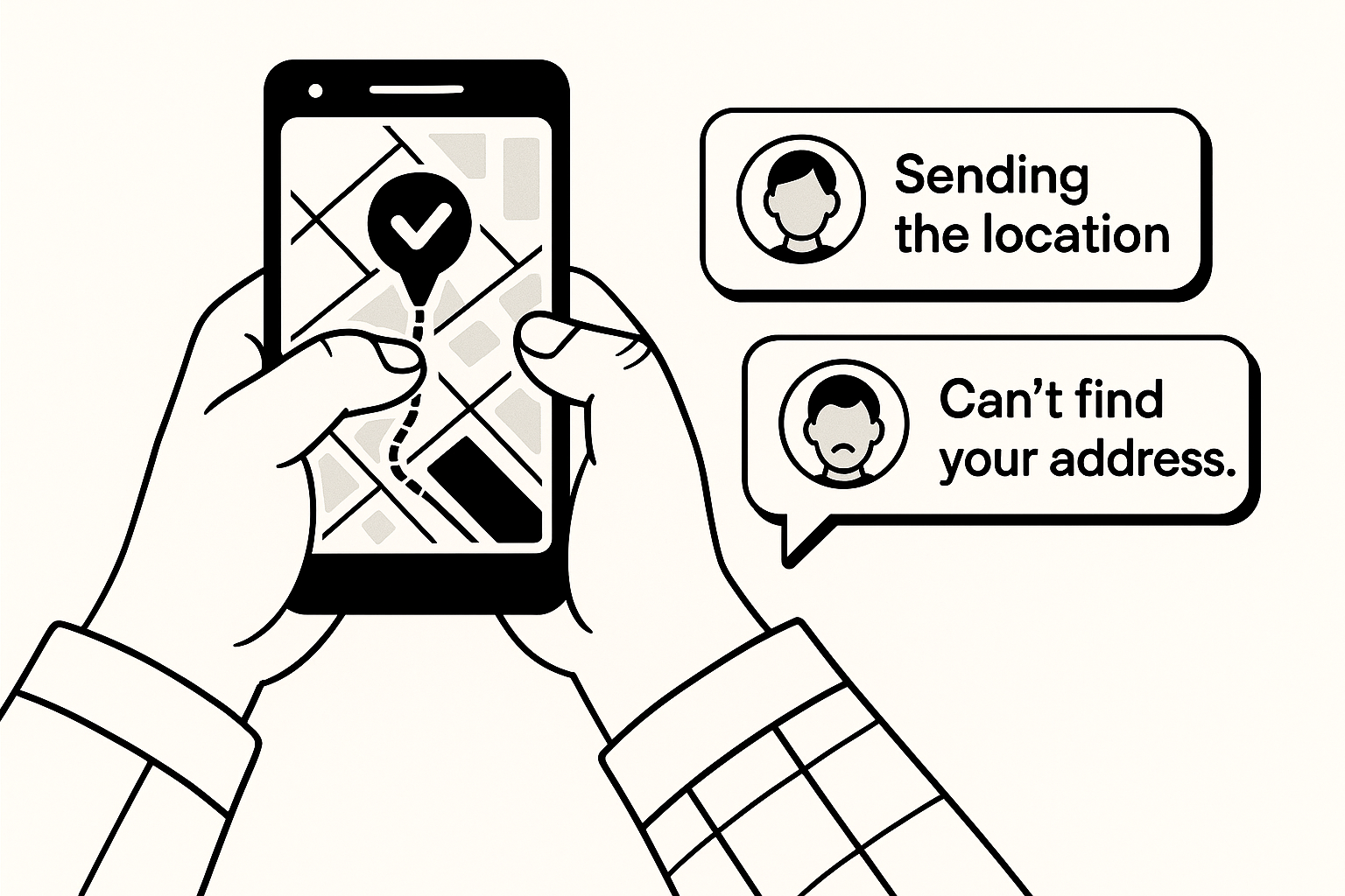 /Collection: /by davooda/Type: PNG/A minimalist illustration depicting a person holding a smartphone displaying a map with a location pin, designed for apps or services related to navigation and location sharing.