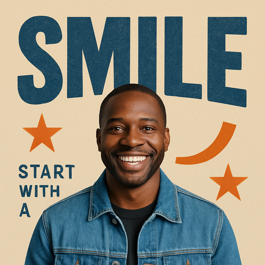 Dental Marketing Graphic Featuring a Confident Smiling Individual