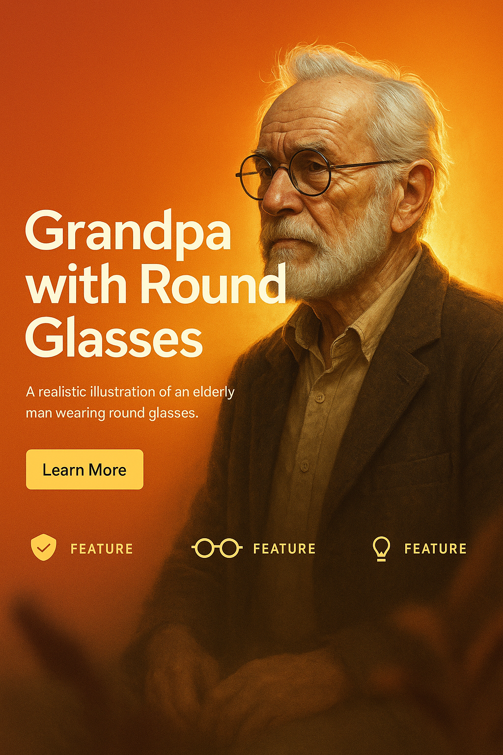 /Collection: /by davooda/Type: PNG/This image features a realistic illustration of an elderly man wearing round glasses, ideal for use in storytelling or character design. The warm colors and detailed expression enhance its appeal.