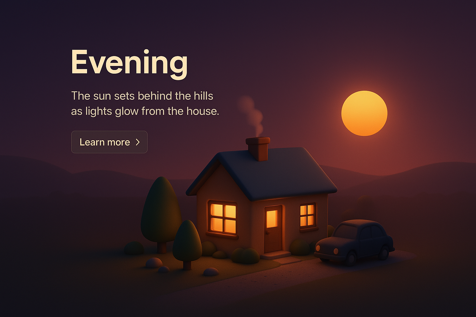 Serene Evening Scene with Warm Glow and Cozy House