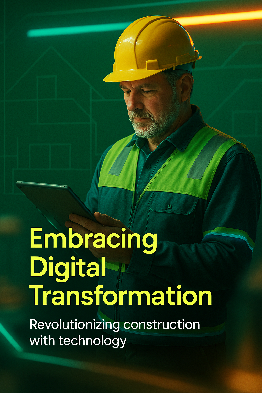 /Collection: /by davooda/Type: PNG/A modern construction worker utilizing a tablet, symbolizing the integration of technology in the construction industry. Ideal for promotional content on digital transformation.