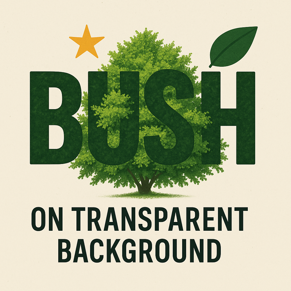 /Collection: /by davooda/Type: PNG/Stylized graphic depicting a bush with bold typography, suitable for environmental themes or gardening topics. The design features a transparent background and earthy color palette.