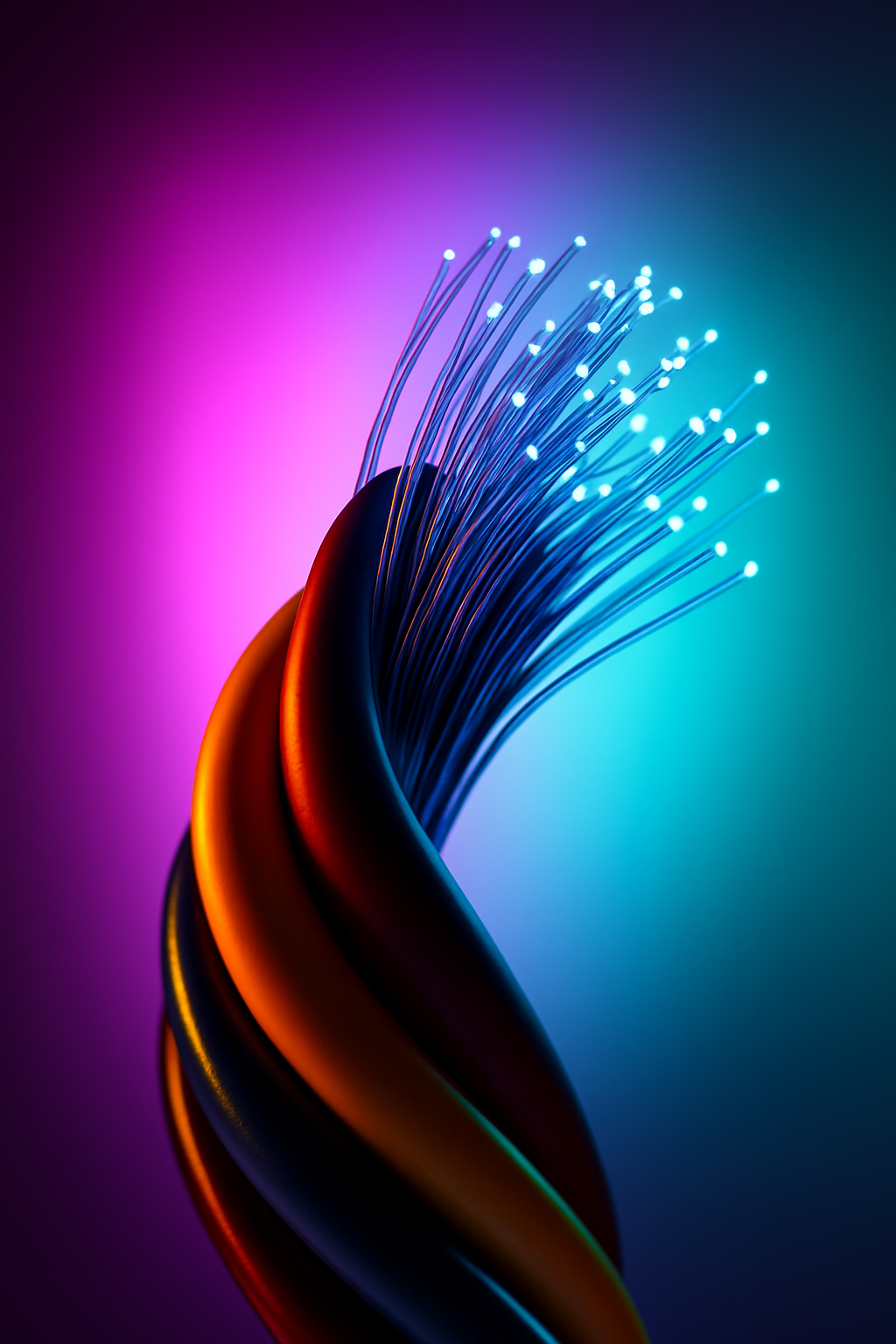/Collection: /by davooda/Type: PNG/A striking composition of colored electric cables intertwined with glowing LED lights. The background features a bright gradient, enhancing the visual appeal of the cables. The setup creates a modern, tech-inspired aesthetic.