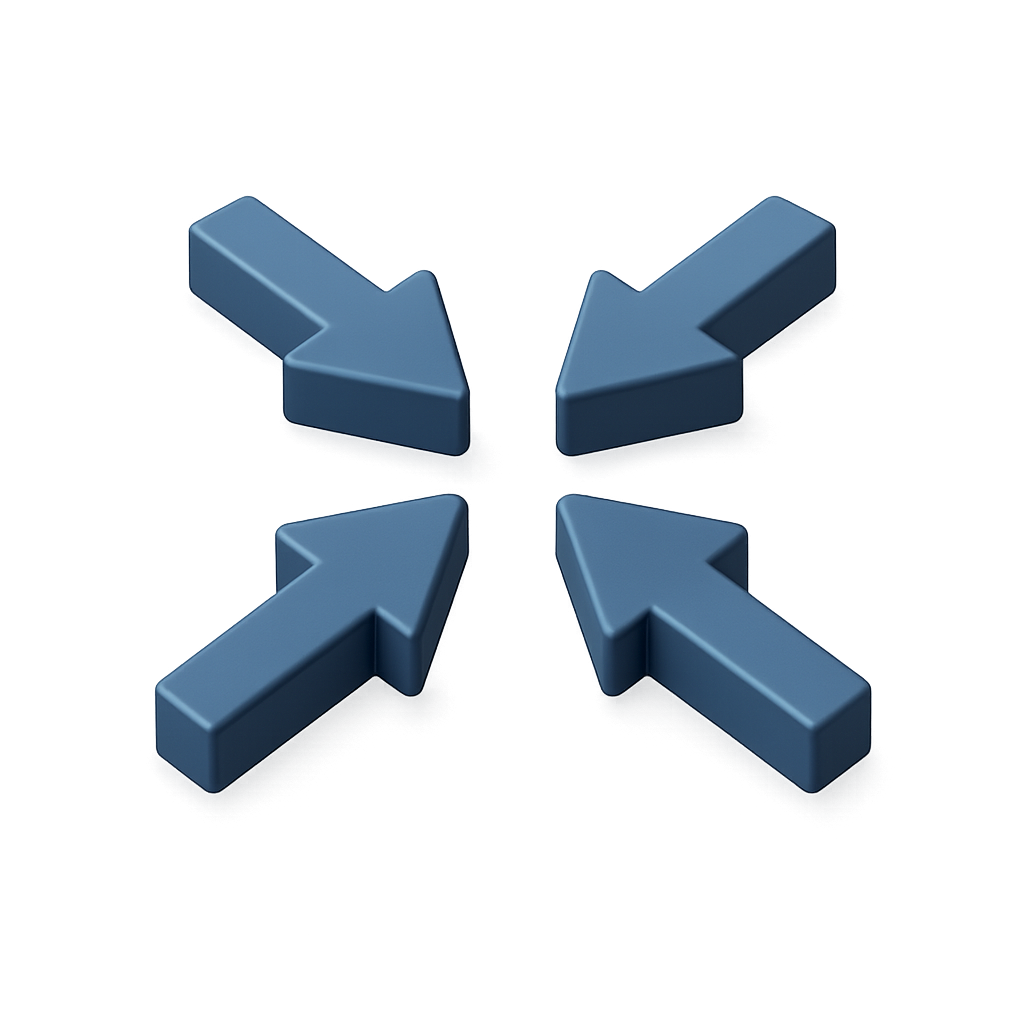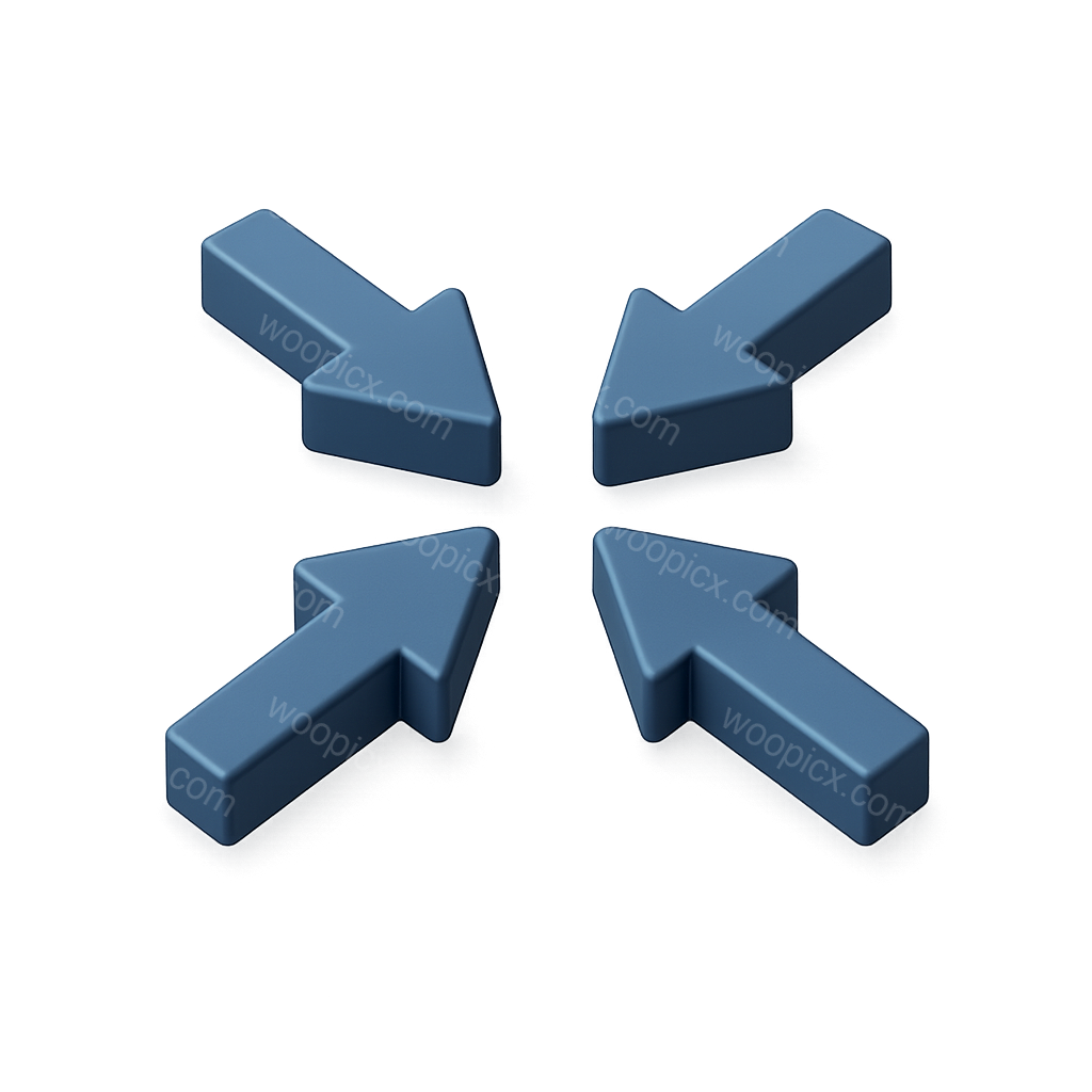 A visually striking 3D icon featuring four arrows pointing inward, designed with a sleek, volumetric style against a smooth gradient background.