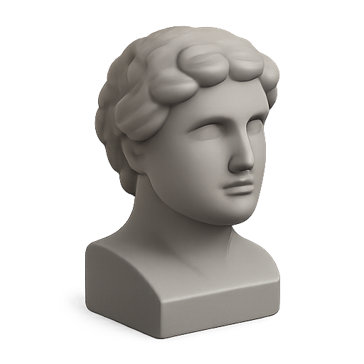 A minimalist 3D representation of a classical Greek sculpture bust, showcasing smooth surfaces and simple lines. Ideal for art-related projects and educational materials.