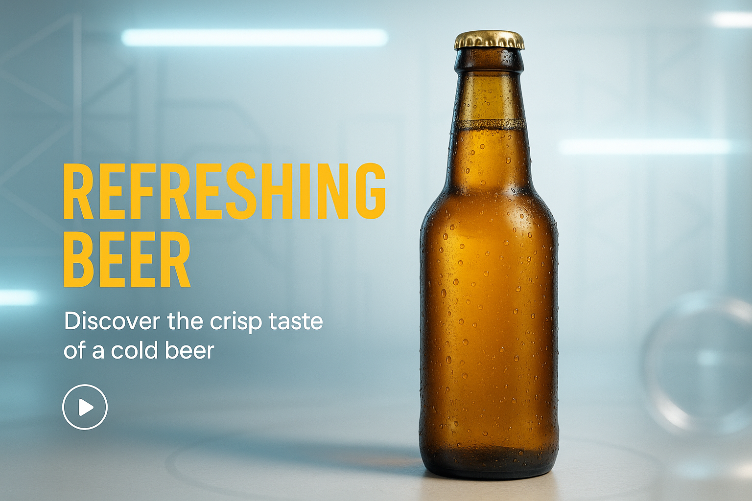 Promotional Beverage Advertisement Featuring a Cold Beer Bottle