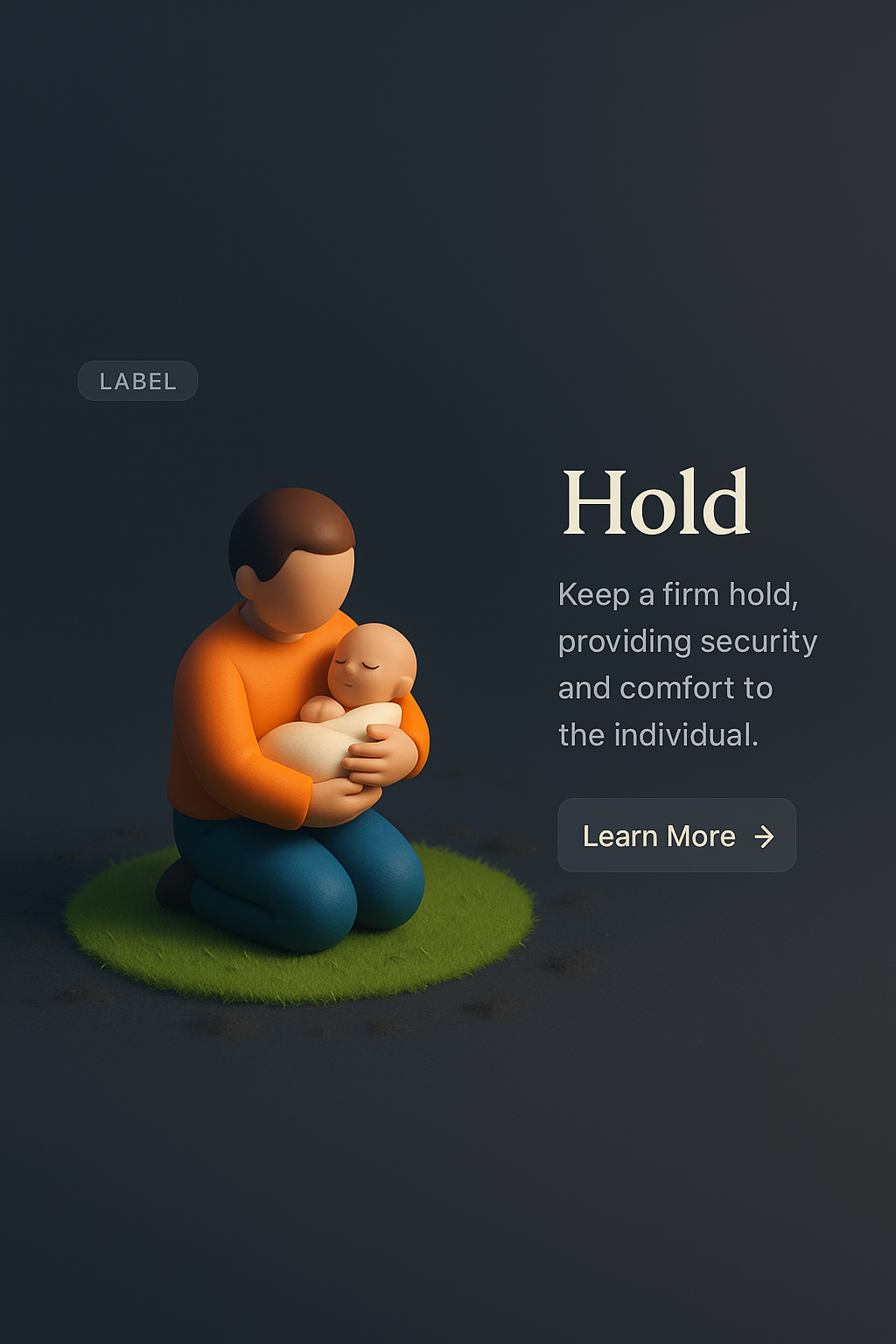 /Collection: /by davooda/Type: PNG/A 3D depiction of a parent holding a child, set against a dark gradient background. The scene emphasizes comfort and security, with a minimalistic design and clear text elements.