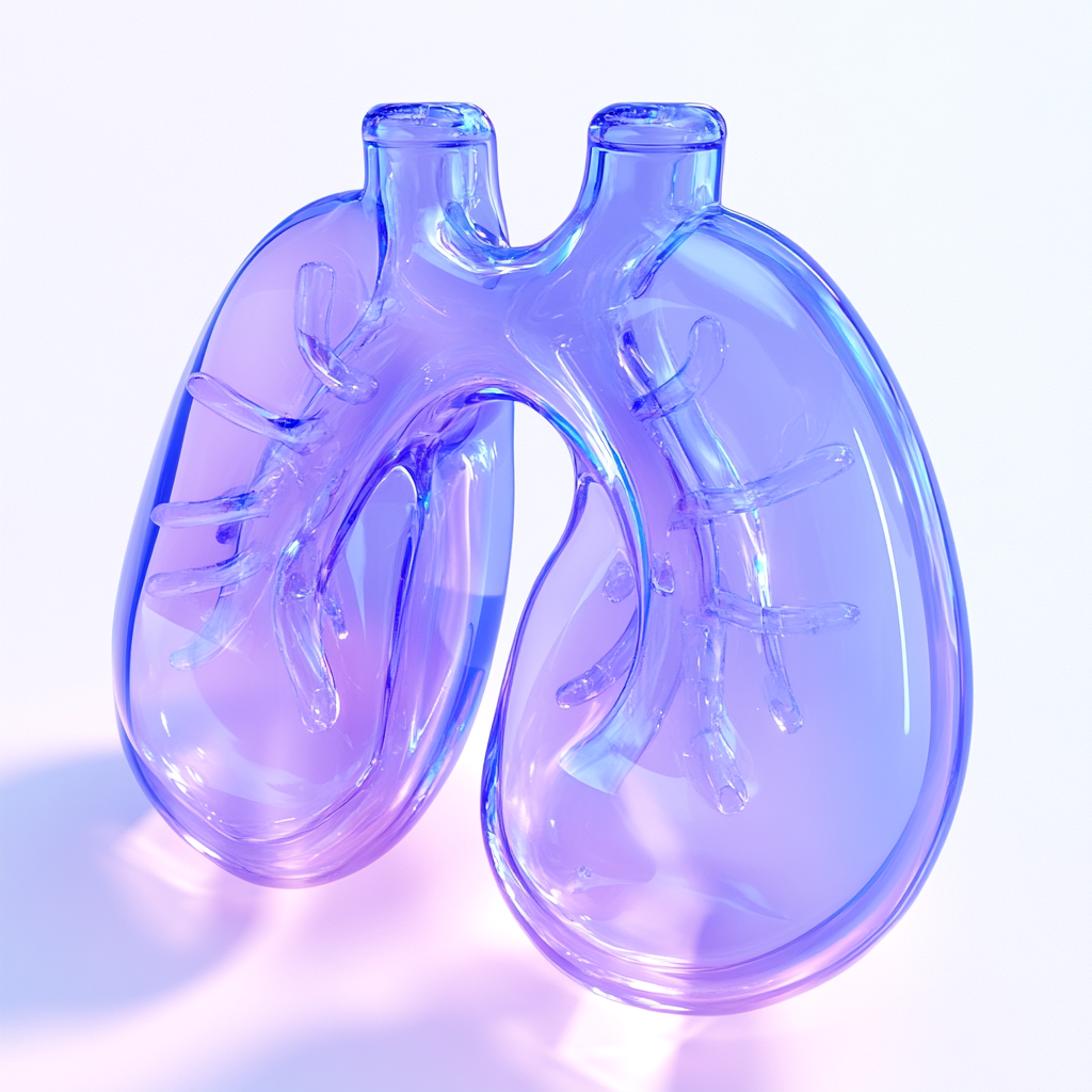 A visually striking 3D rendering of stylized lungs with a transparent, glass-like appearance. This image is suitable for medical illustrations or educational purposes.