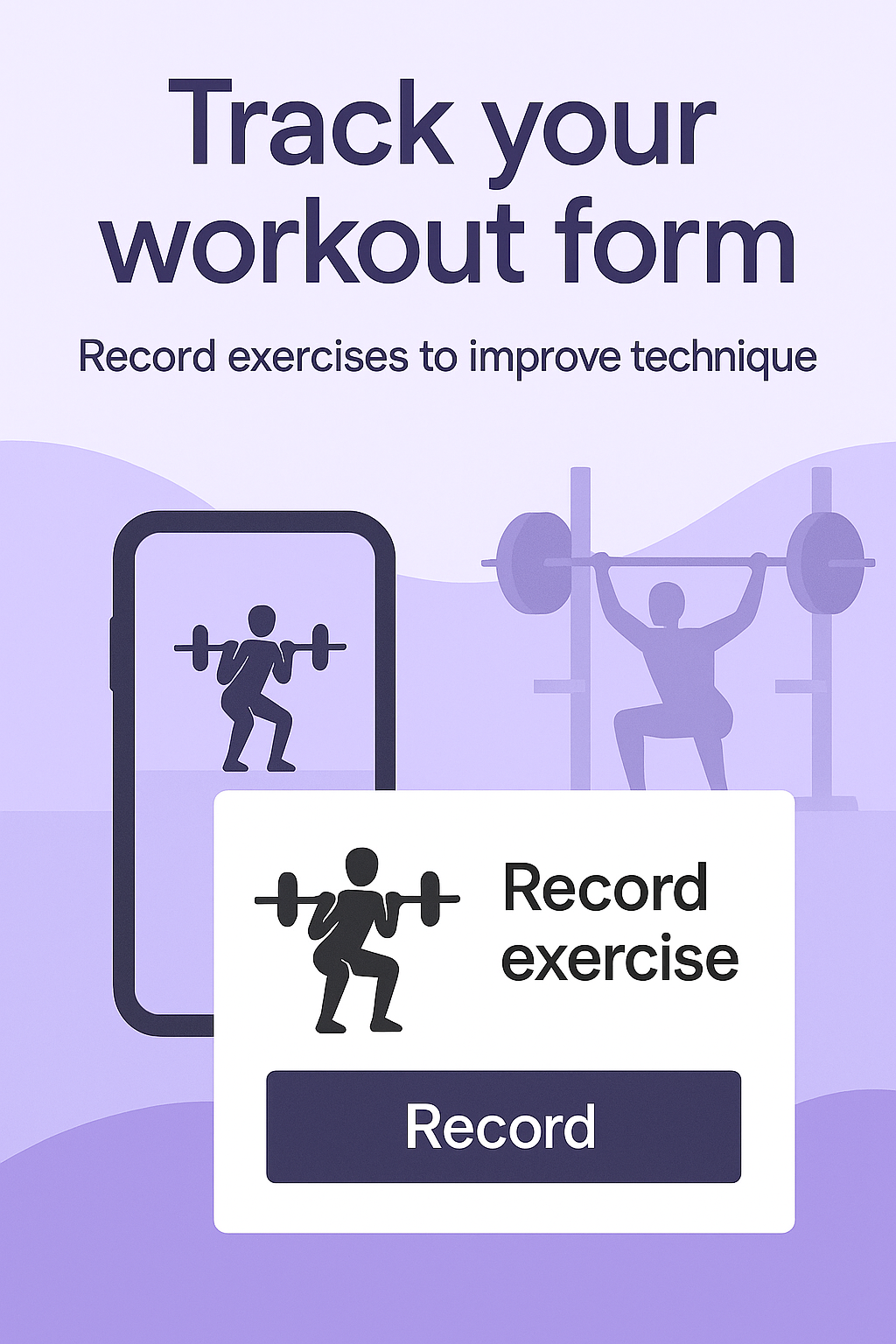 Informative graphic for a fitness app, showcasing the importance of tracking workout form with engaging visuals and a modern design, aimed at fitness enthusiasts.