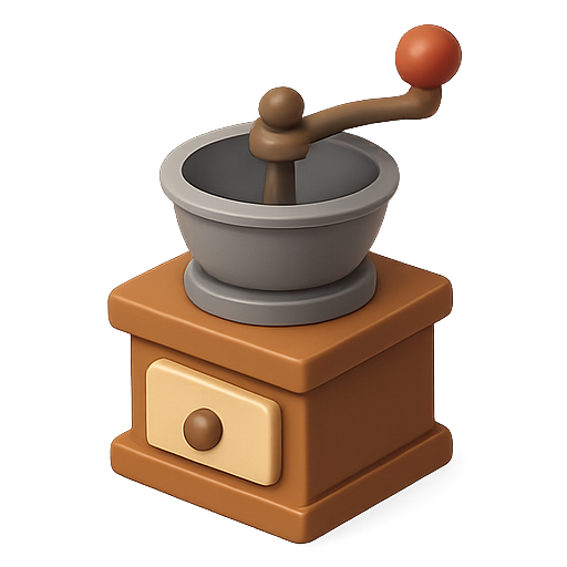 A visually appealing 3D icon of a coffee grinder, designed with smooth textures and a playful aesthetic, ideal for food-related applications or apps.