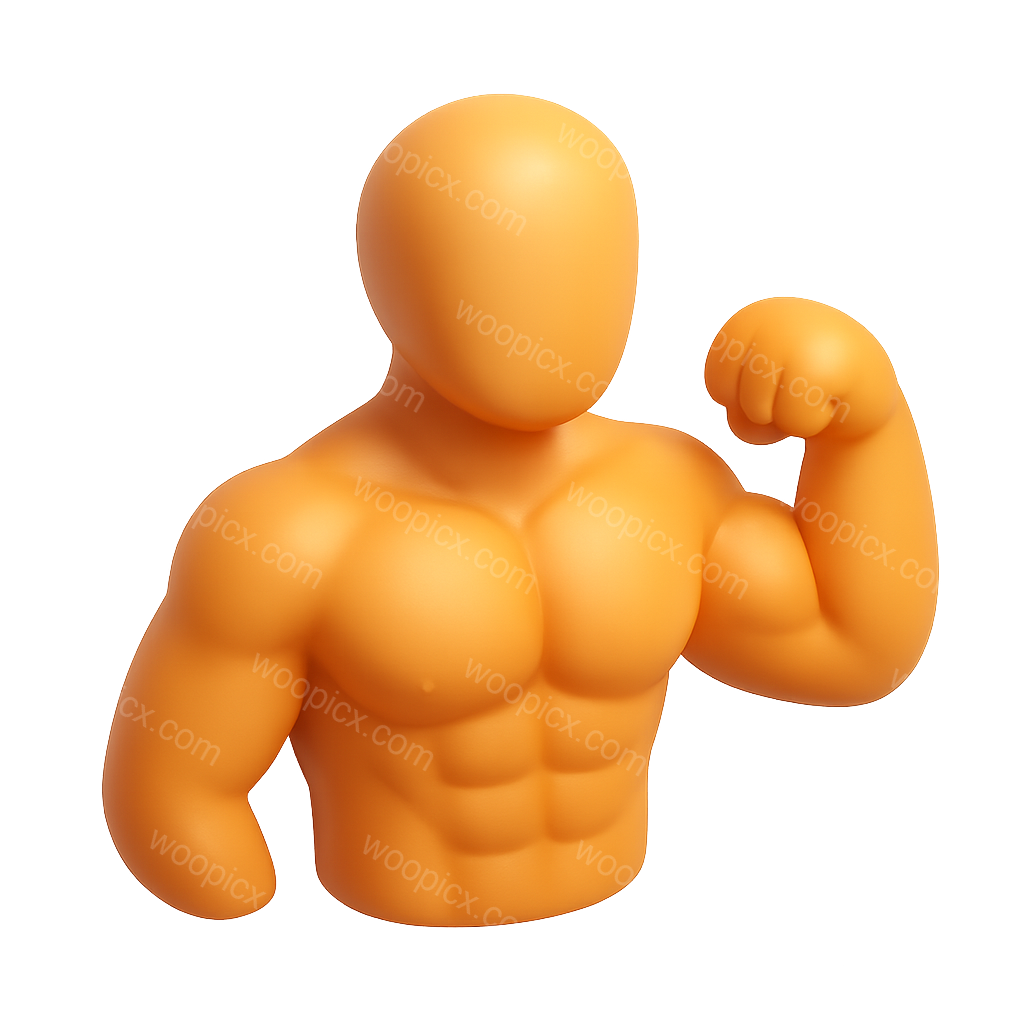 /Premium/Collection: /by davooda/Type: PNG/A stylized 3D icon of a muscular figure flexing an arm, presented in a three-quarter view. The icon features a smooth, orange finish against a soft gradient background, emphasizing its volumetric design.