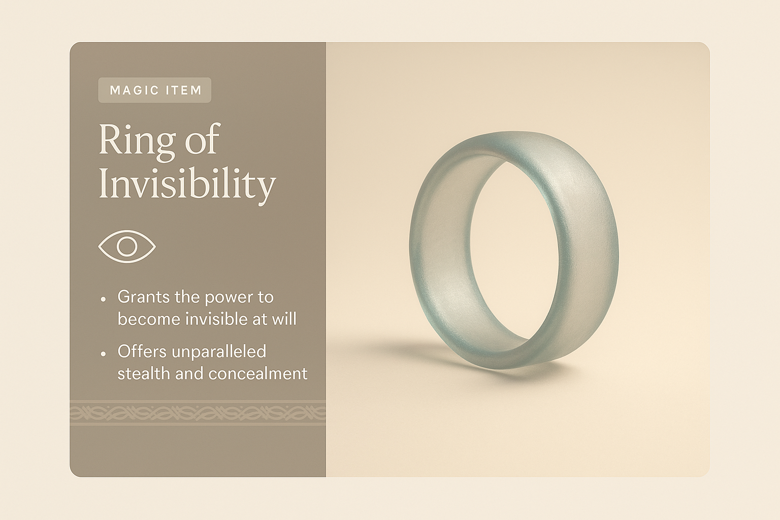 /Collection: /by davooda/Type: PNG/A beautifully designed 3D illustration of a translucent ring symbolizing invisibility. The soft gradient background complements the elegant text description.