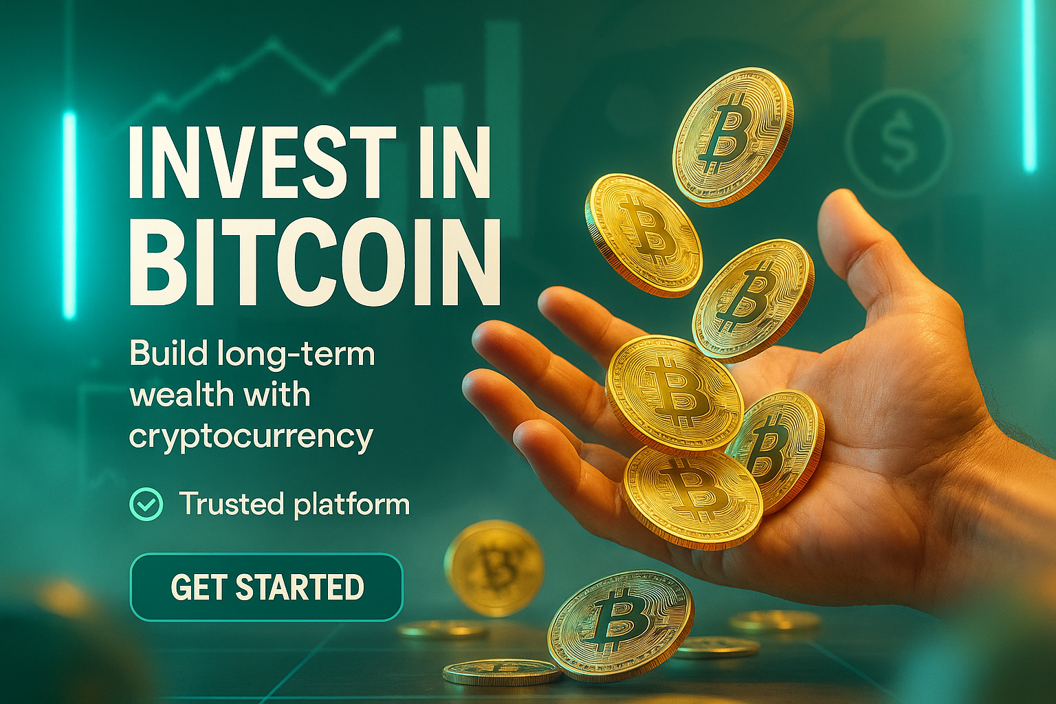 /Collection: /by davooda/Type: PNG/Engaging promotional image encouraging investment in Bitcoin, featuring a hand holding Bitcoin coins with a modern digital backdrop, ideal for financial platforms.