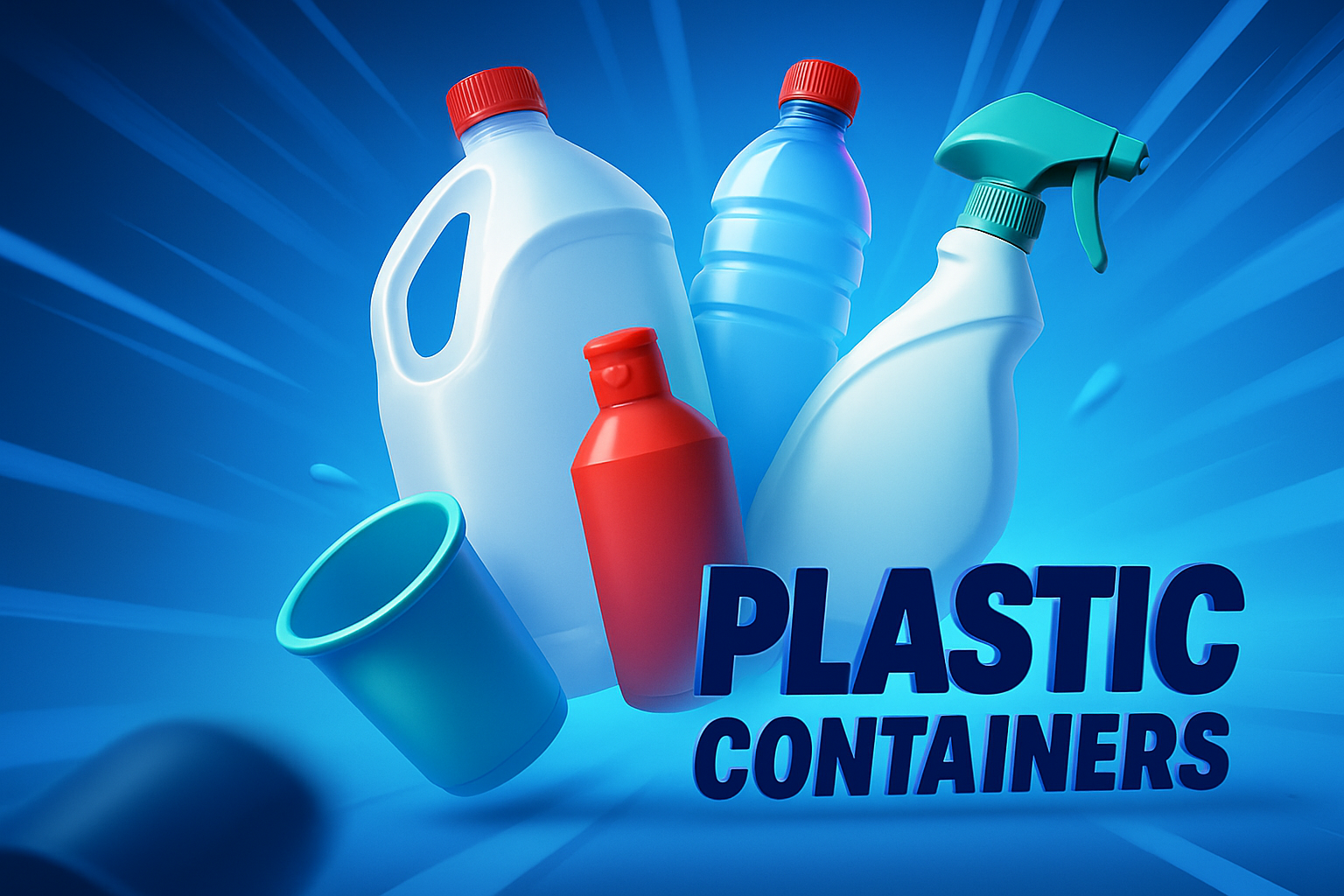 Dynamic 3D Illustration of Plastic Containers and Bottles