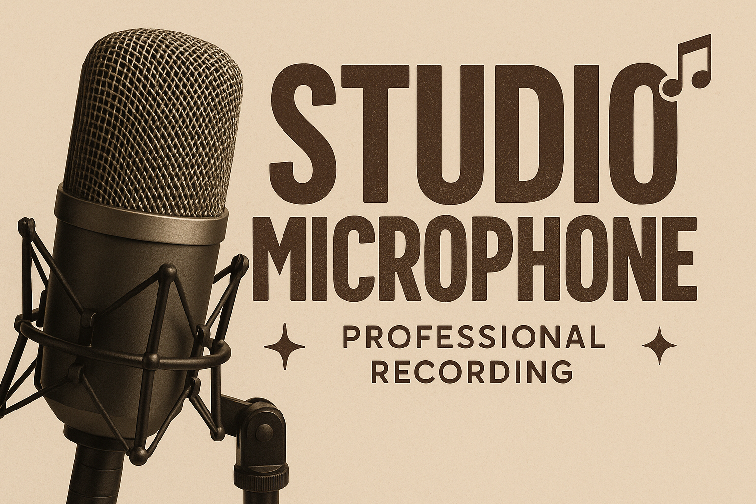 Stylized graphic featuring a studio microphone with bold typography, ideal for music production or audio recording promotional materials.