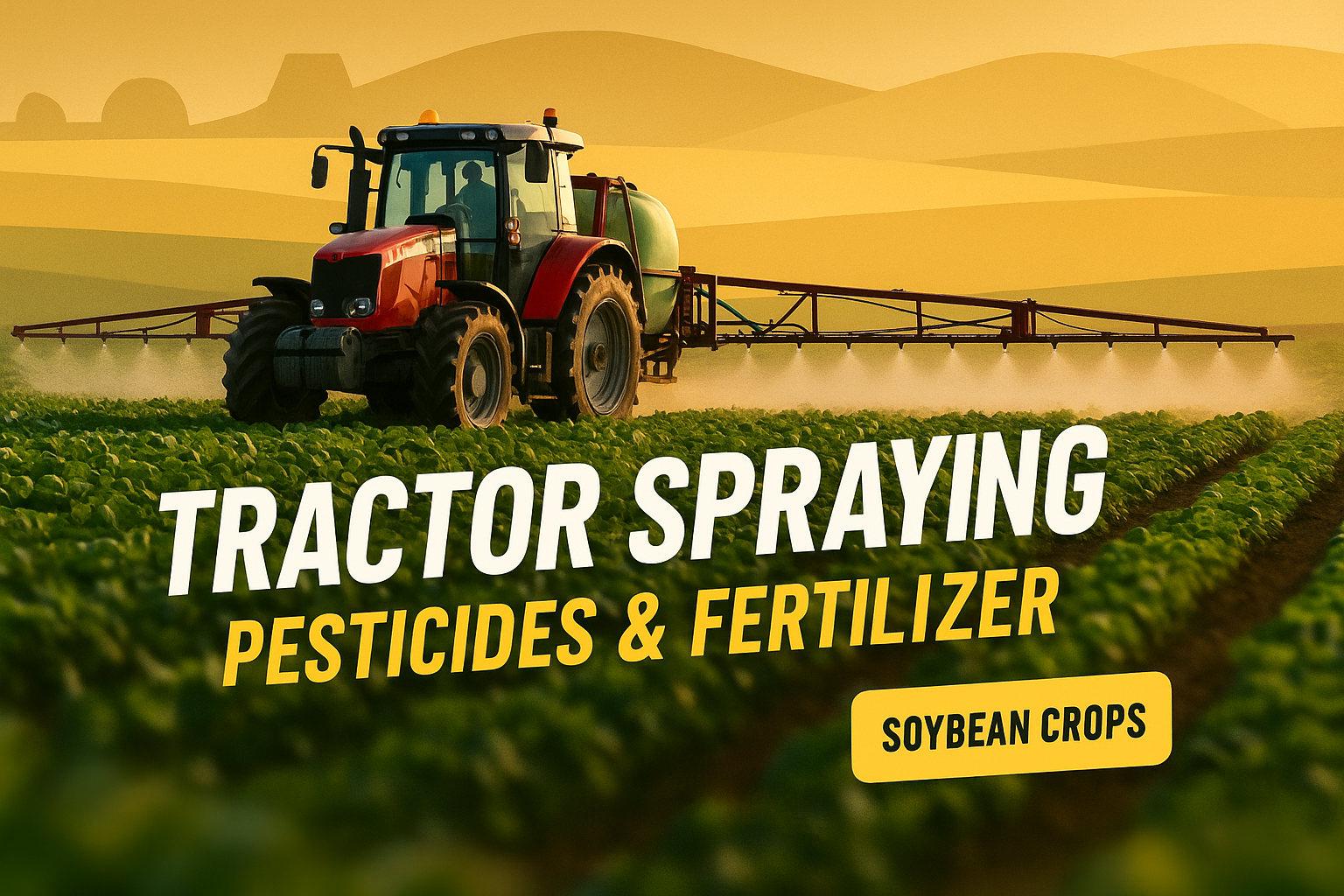 /Collection: /by davooda/Type: PNG/Vibrant agricultural image featuring a tractor spraying pesticides and fertilizers on soybean crops. The design emphasizes farming and sustainability, ideal for agricultural marketing or educational content.