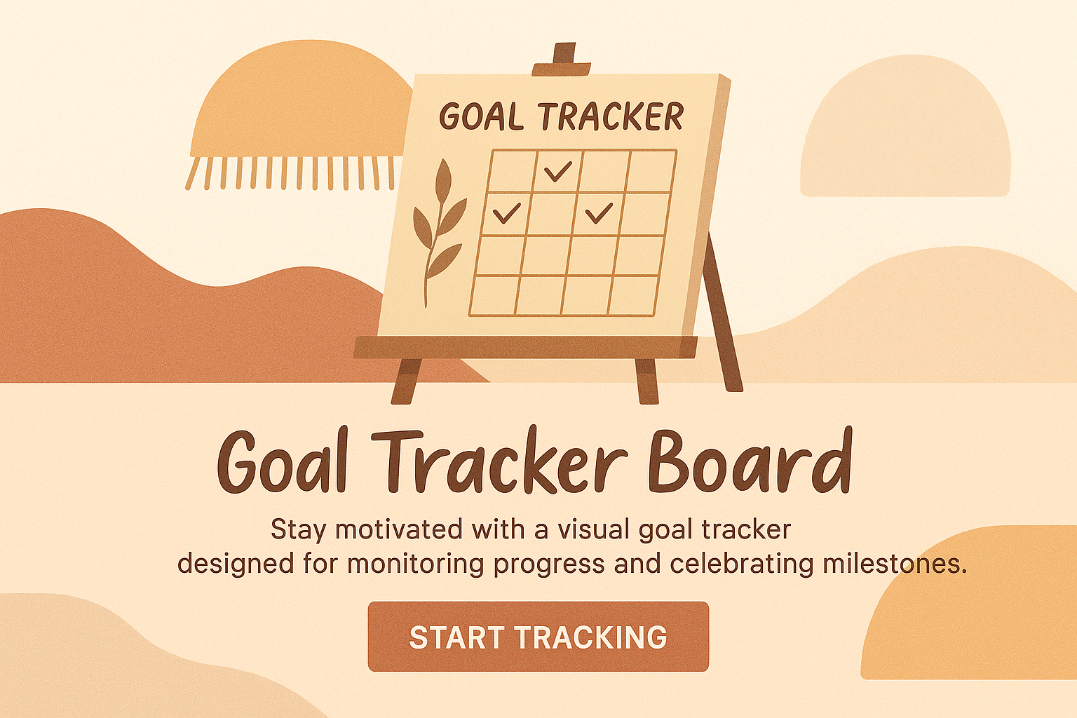 /Collection: /by davooda/Type: PNG/A visually appealing goal tracker board in boho style, featuring a checklist design with a warm color palette. Includes a call-to-action button for tracking progress.