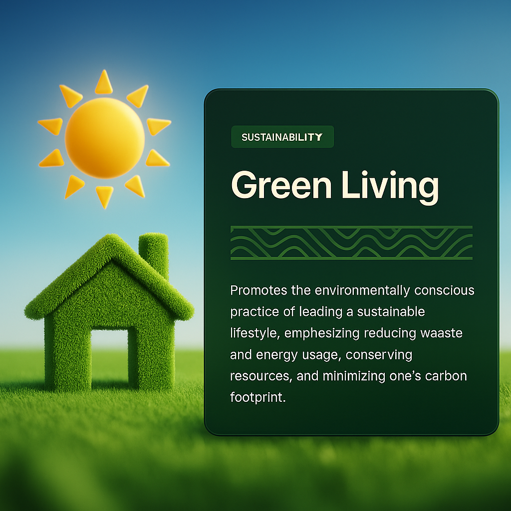 /Collection: /by davooda/Type: PNG/A vibrant depiction of a green home set on a lush lawn, featuring a sun symbol. The design emphasizes sustainability and eco-friendly living with a modern aesthetic.