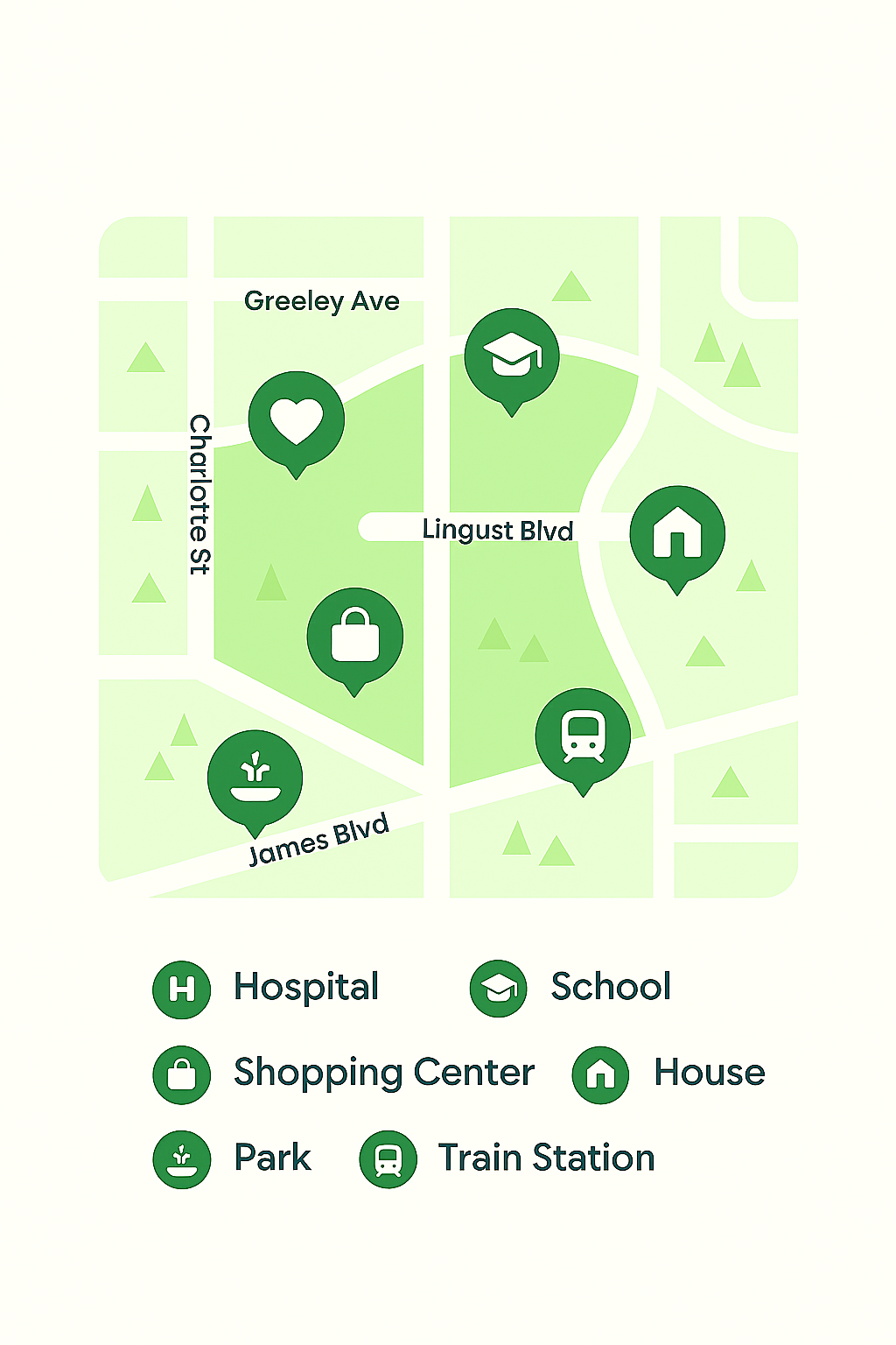 Real Estate Promotion Graphic Featuring Neighborhood Amenities
