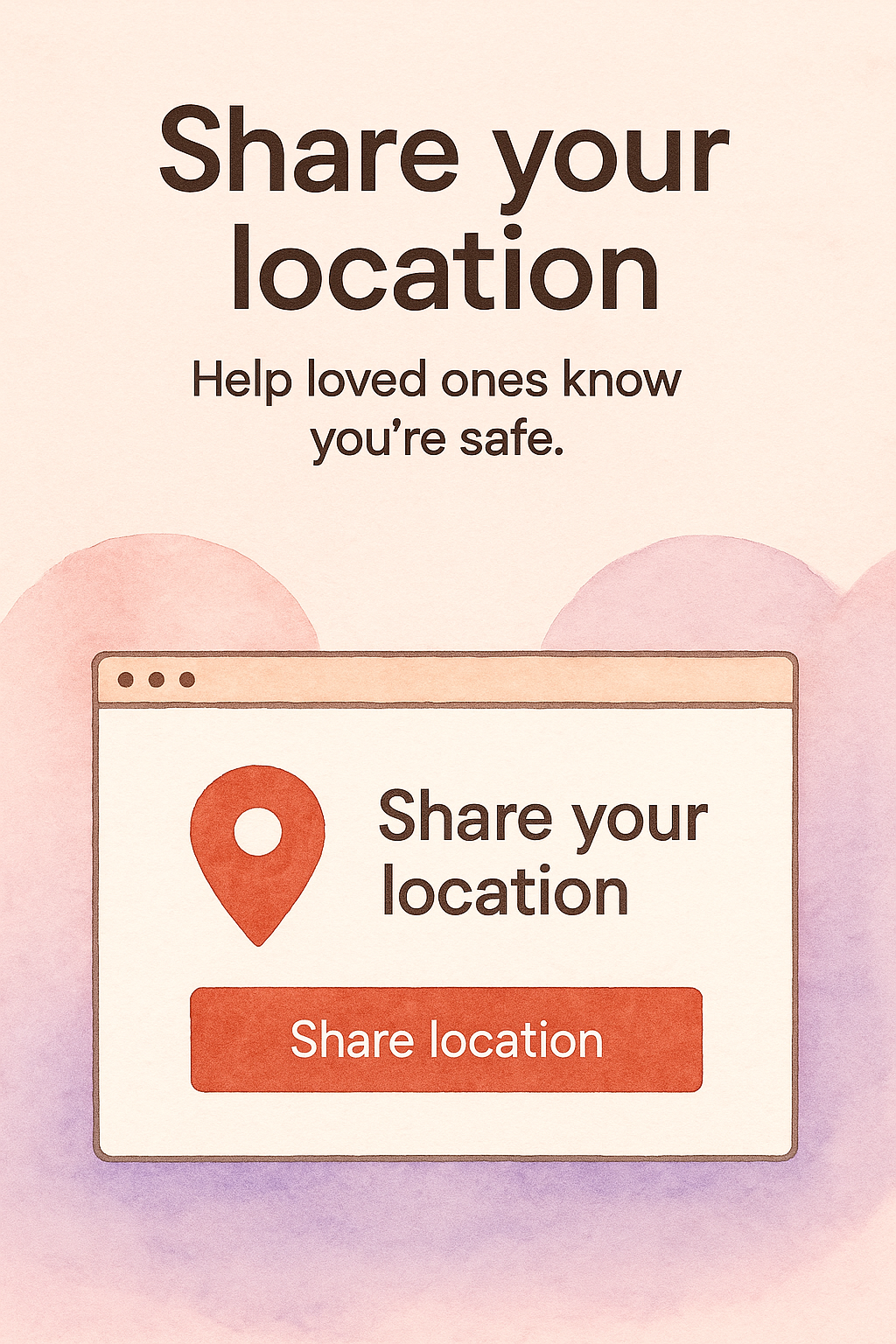 A visually appealing graphic promoting a location-sharing feature, utilizing soft colors and simple design elements, ideal for app or website use.