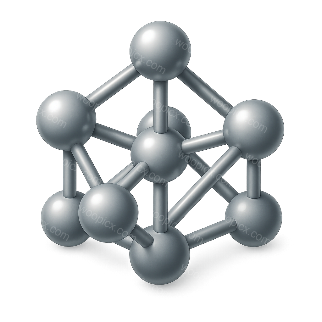 /Premium/Collection: /by davooda/Type: PNG/A stylized 3D icon of the Atomium structure, showcasing a transparent background with a three-quarter isometric view. The design features metallic spheres connected by rods, emphasizing a volumetric appearance.