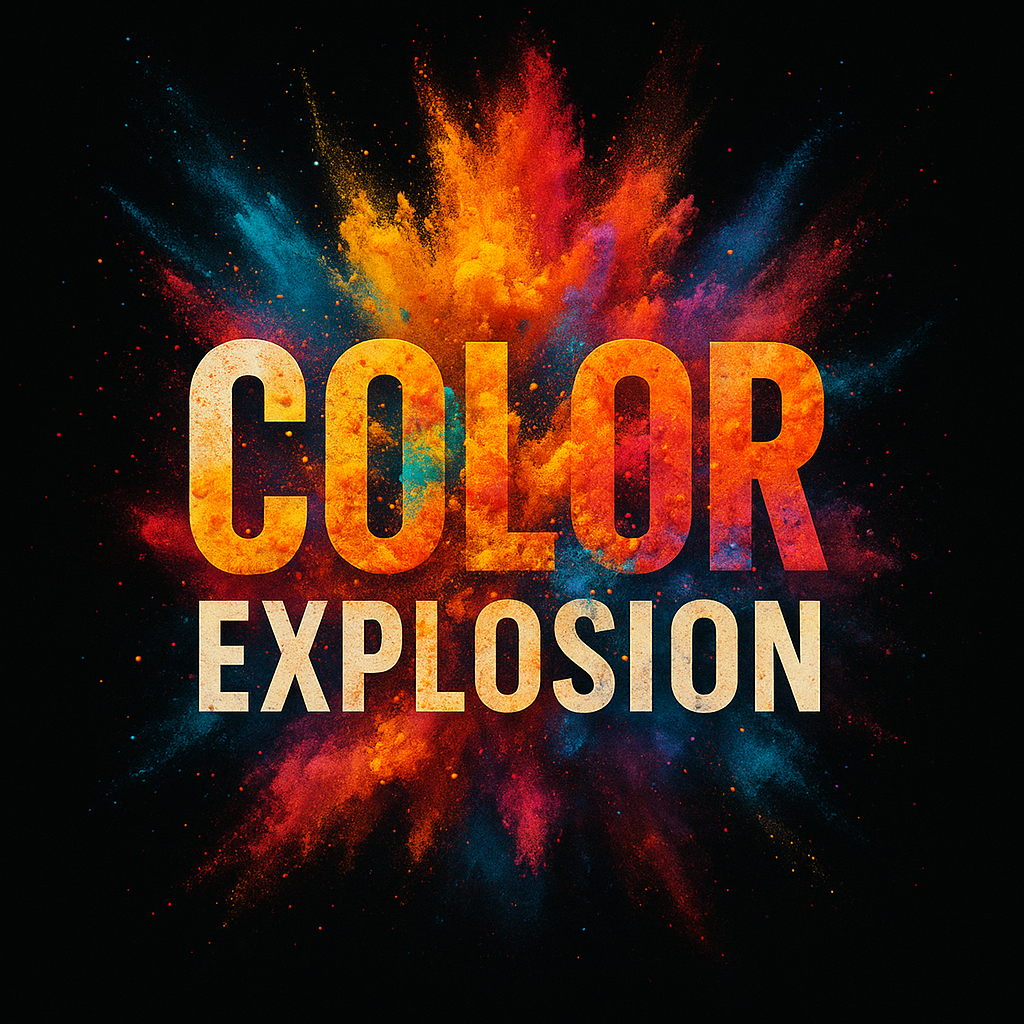A visually striking graphic featuring an explosion of colors with bold typography, ideal for creative projects, social media, and promotional materials.