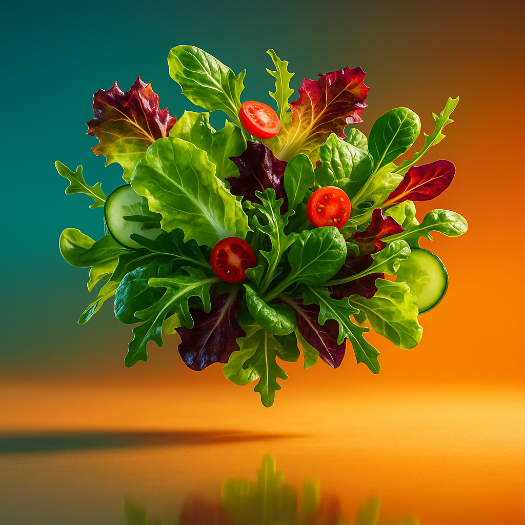 Dynamic Mixed Green Salad Still Life in Realism Style