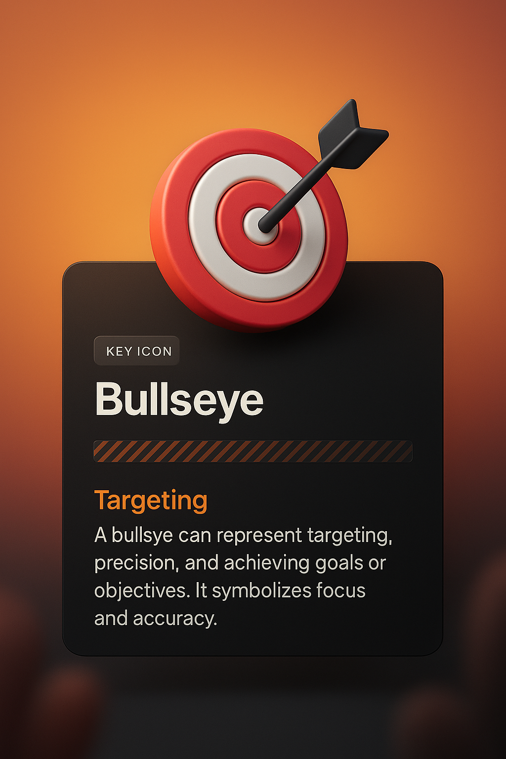 A visually striking 3D bullseye icon integrated with design elements, featuring a dark panel with text and graphics. The background transitions from a gradient to a solid color, emphasizing focus and precision.