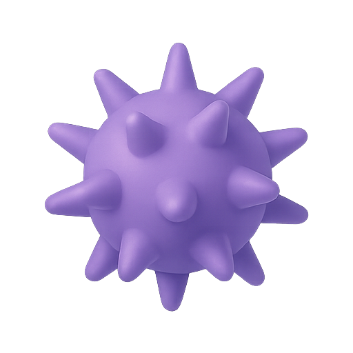 A stylized 3D model of a purple sphere with spikes, showcasing a playful and modern design. Suitable for use in playful graphics, educational materials, or as a decorative element.