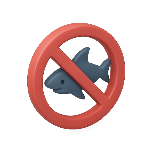 A playful prohibition sign featuring a stylized shark illustration, ideal for topics related to marine safety or conservation. The design is modern and simplistic, appealing to a broad audience.