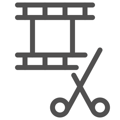 outline simple icon: cut, filmstrip, montage, post-production, scissors