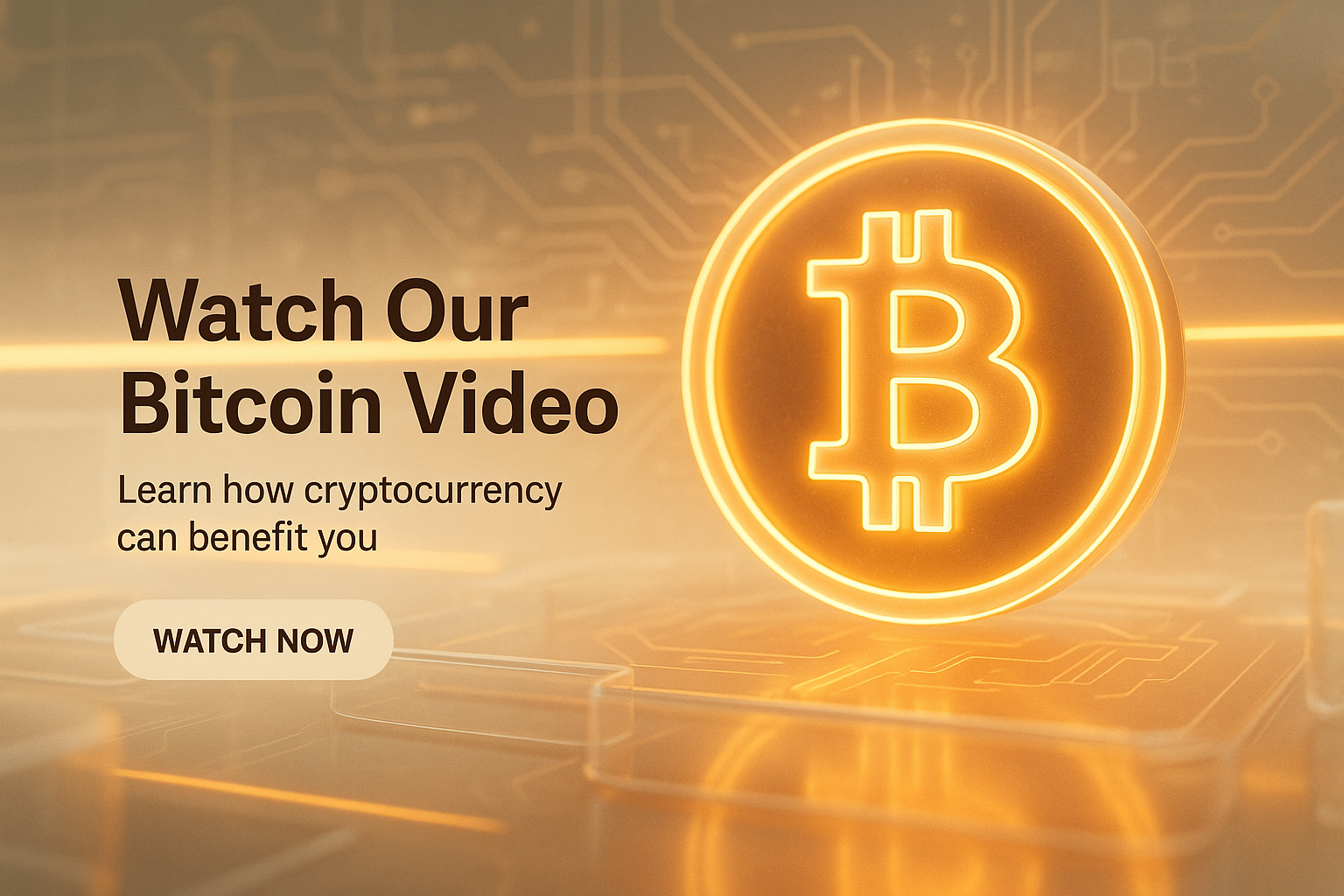 Engaging promotional banner featuring a glowing Bitcoin symbol, designed to attract viewers to cryptocurrency content. Ideal for digital marketing in fintech.
